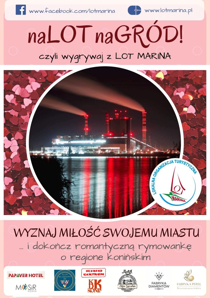 Od 7 do 11 lutego br. na facebook’u Stowarzyszenia (www.facebook.com/lotmarina) Lokalna Organizacja Turystyczna MARINA czekać będzie na zgłoszenia romantycznych rymowanek o własnej miejscowości. Zgłoszenia należy umieszczać pod postem konkursowym, który pojawi się na fanpage'u Lokalnej Organizacji Turystycznej MARINA dnia 7 lutego 2022 r. Zadaniem uczestników jest dokończenie fragmentu wiersza „Region koniński z licznych atrakcji słynie...„